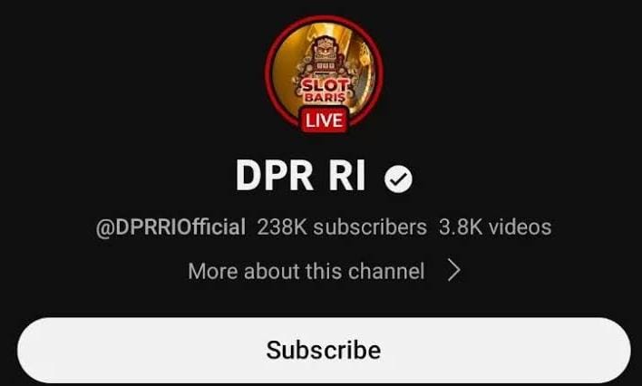 INIKEPRI.COM – Akun Youtube milik DPR RI diretas orang tak dikenal, pada Rabu (6/9/2023) pagi. Akun DPR RI itu menampilkan tayangan judi online secara live. Tak hanya itu, foto profil pada akun tersebut juga diganti dengan sebuah gambar bertulis “Slot Baris”.