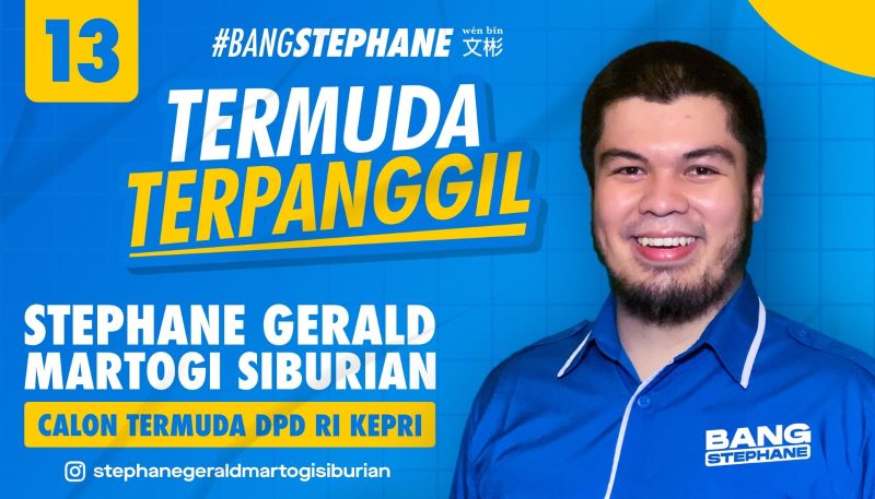 Stephane, yang juga Ketua Gekrafs Kepri ini, mengusung tagline Termuda dan Terpanggil pada Pemilu 2024 mendatang.