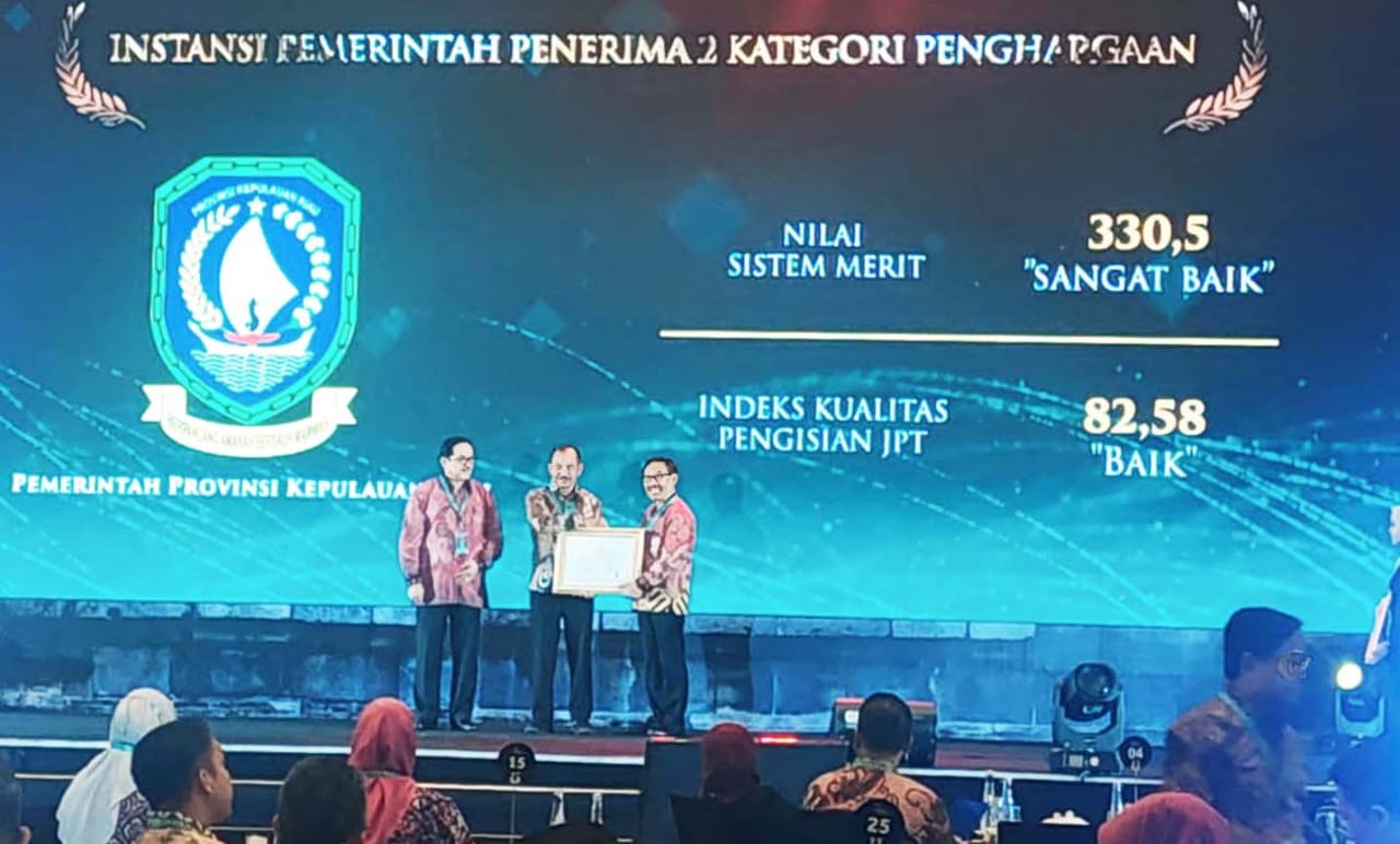 Penghargaan ini diserahkan oleh Ketua Komisi Aparatur Sipil Negara (KASN) Prof. Agus Pramusinto dan diterima langsung oleh Sekretaris Daerah Provinsi Kepri Adi Prihantara di Kraton Grand Ballroom Yogyakarta Marriot Hotel, pada Kamis, (7/12/2023).