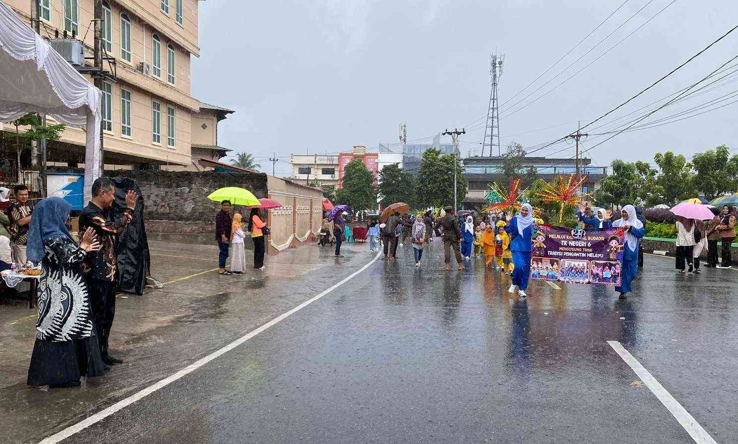 INIKEPRI.COM – Pawai tutup tahun ajaran 2023/2024 bagi siswa PAUD dan TK se-Kota Tanjungpinang berlangsung meriah meskipun sempat diguyur hujan dalam pelaksanaannya.