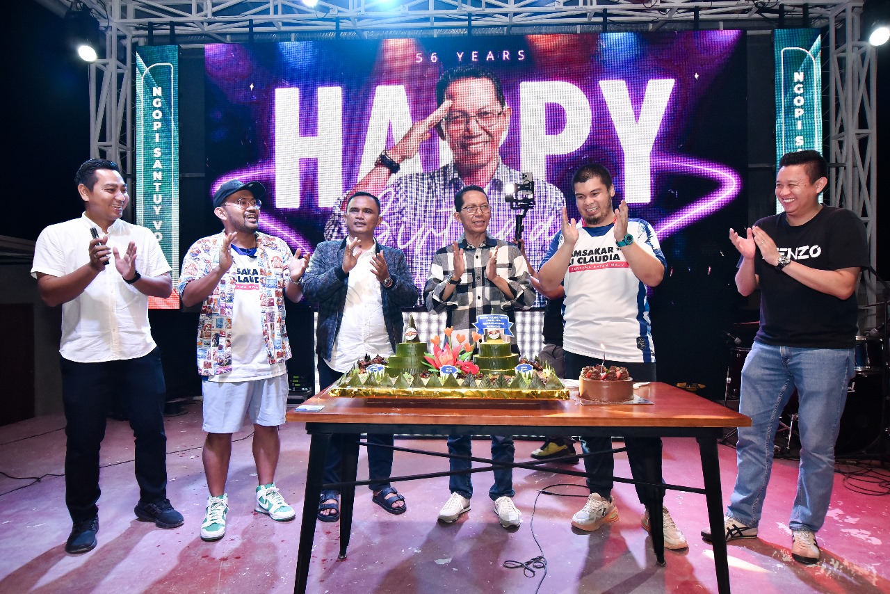 “Ini pertama kali dalam hidup saya yang sudah menapaki usia 56 tahun diberikan kejutan dengan konsep seperti ini. Terima kasih kepada seluruh milenial dan Gen-Z yang telah hadir dan mendoakan. Teruntuk TKM saya apresiasi setinggi-tingginya untuk penyelenggaraan Ngopi Santuy Vo.2 ini,” ucap Amsakar.