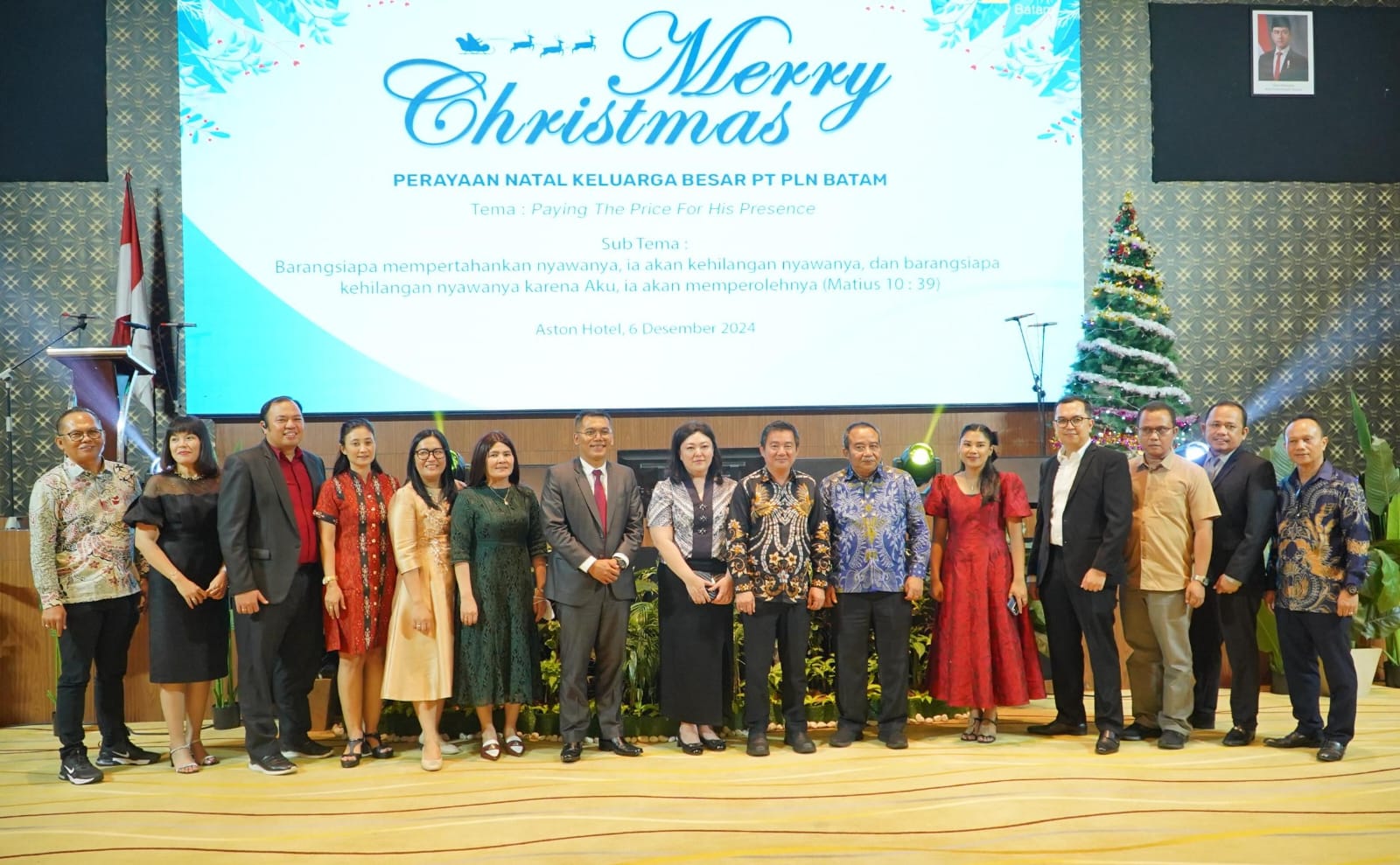 INIKEPRI.COM – Dalam rangka memperingati Natal 2024, PT PLN Batam menggelar acara perayaan Natal tanggal 6 Desember 2024 di Hotel Aston Batam dengan mengusung tema “Paying the Price for His Presence” dan subtema “Barangsiapa mempertahankan nyawanya, ia akan kehilangan nyawanya, dan barang siapa kehilangan nyawanya karena Aku, ia akan memperolehnya (Matius 10: 39)”. Acara diwarnai dengan semangat kebersamaan dan harapan baru.