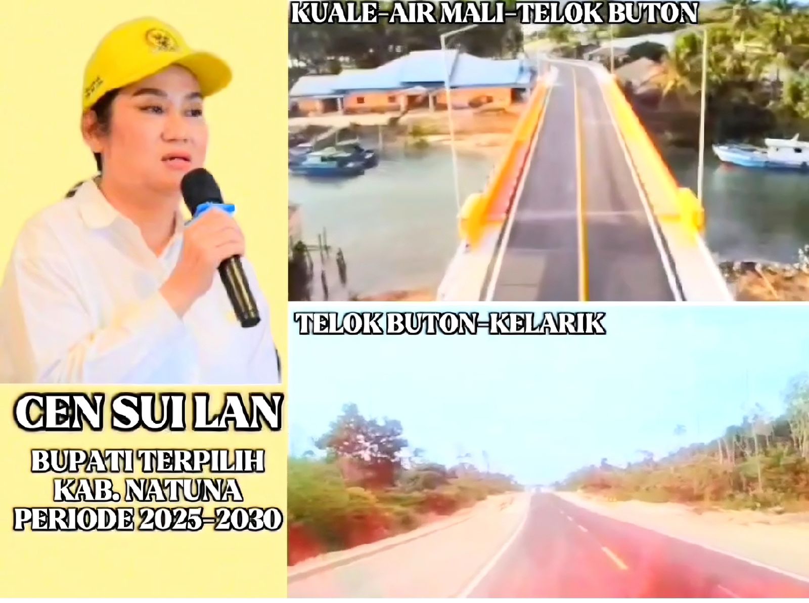 Namun, masifnya pembangunan infrastruktur jalan dan jembatan di Kecamatan Bunguran Utara, juga tak terlepas dari perjuangan seorang perempuan di Gedung Parlemen Senayan, dia adalah Cen Sui Lan.