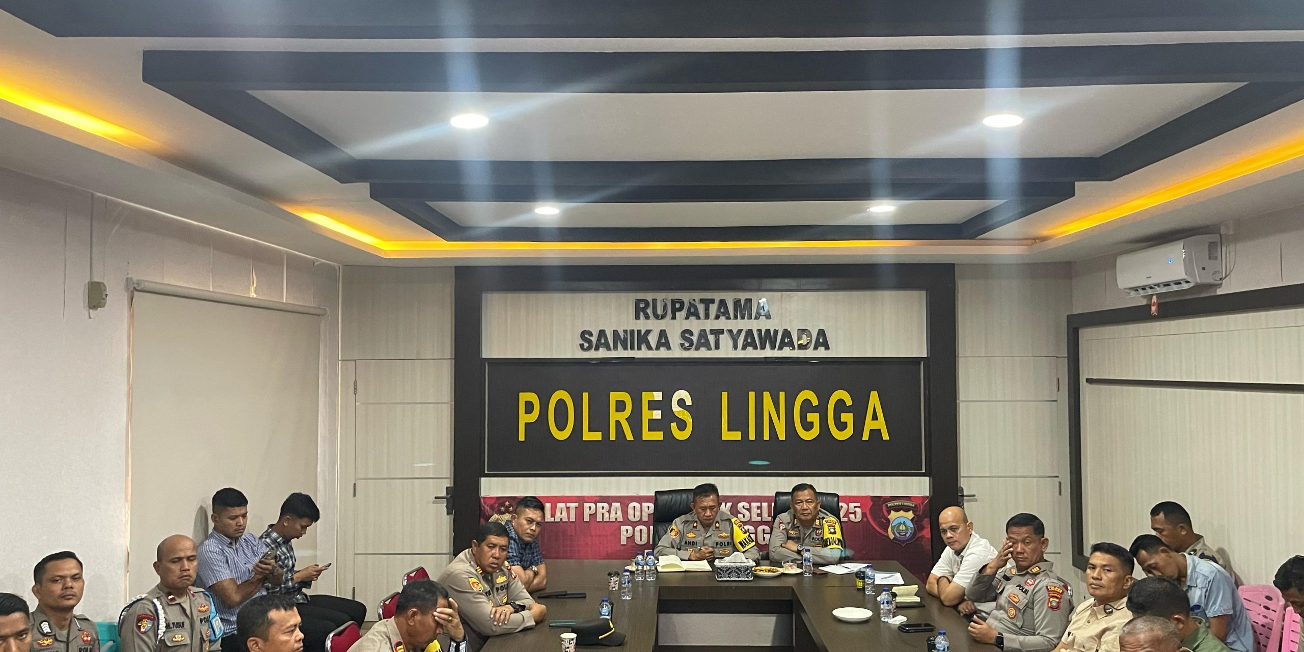 Wakapolres Lingga, bersama dengan Pejabat Utama (PJU) dan Kapolsek jajaran Polres Lingga, serta personel yang menduduki jabatan Perwira turut serta dalam kegiatan Commander Wish yang diadakan secara virtual oleh Inspektur Jendral Polisi Asep Safrudin, S.I.K., M.H., Kapolda Kepri di ruang Rupatama Polres Lingga, Selasa, (18/2/2025). Foto: INIKEPRI.COM/Polres Lingga