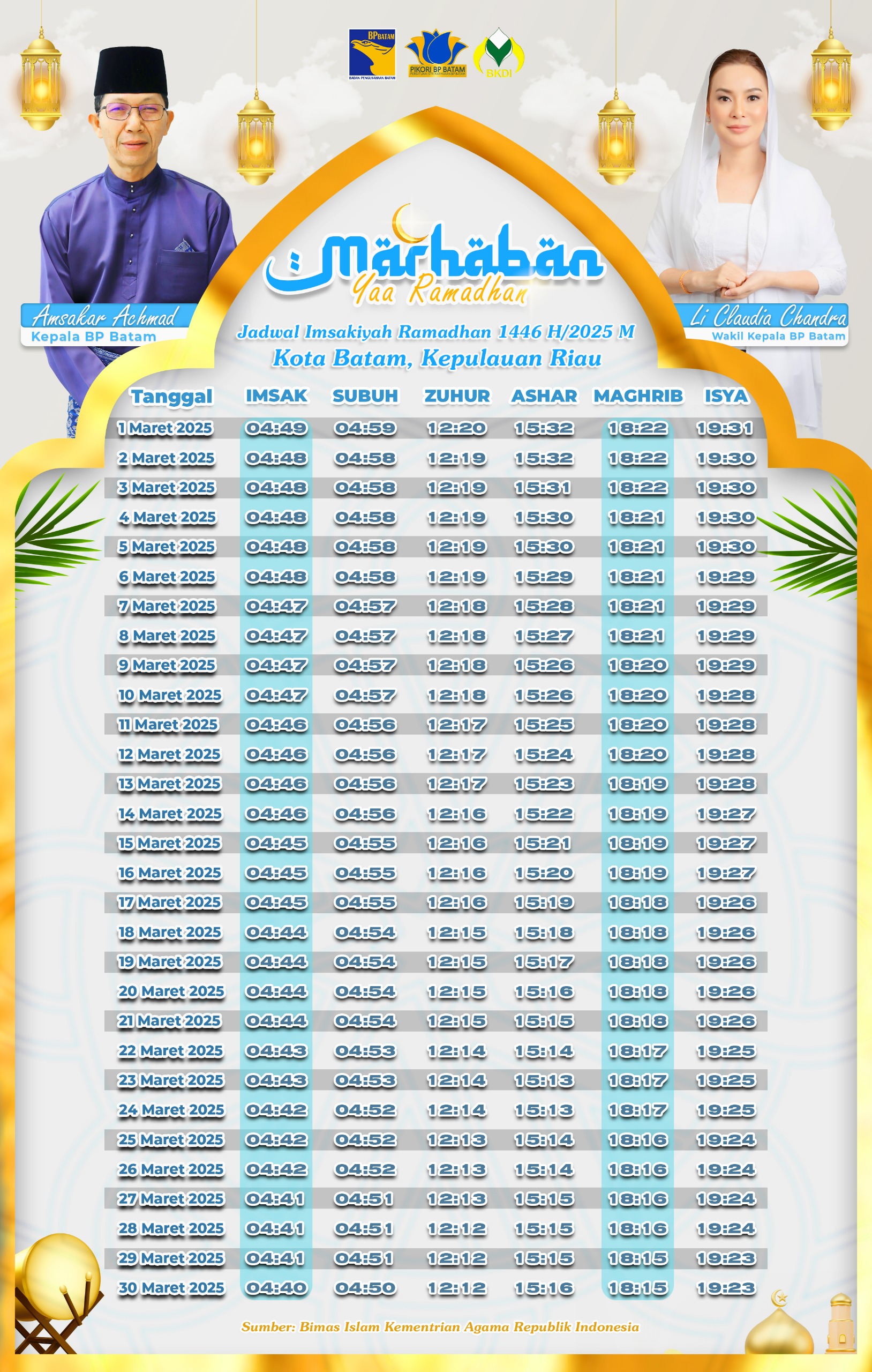 “Saya Amsakar Achmad, Wali Kota Batam sekaligus Kepala BP Batam mengucapkan Marhaban Ya Ramadan. Selamat datang bulan Ramadan kepada seluruh warga Batam tercinta,” ucap Amsakar sebagai pembuka.