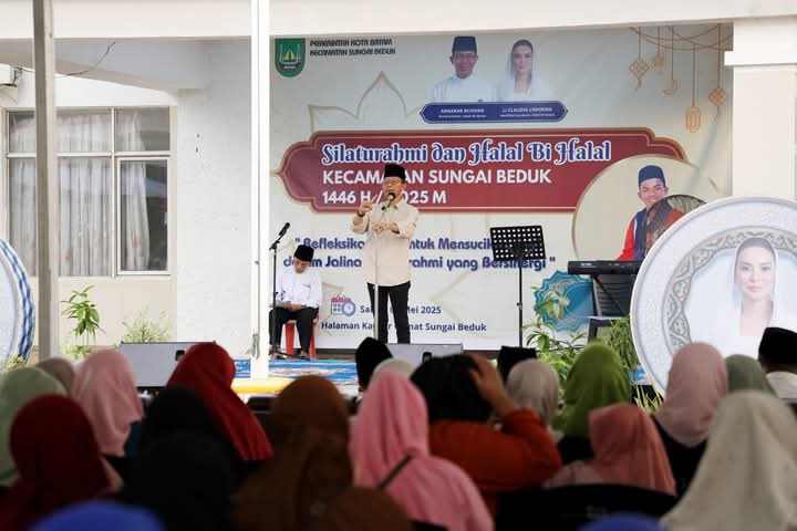 INIKEPRI.COM – Pererat Silaturahmi bersama masyarakat Kecamatan Sungai Beduk, Wali Kota Batam, Amsakar Achmad menghadiri Silaturahmi dan Halal bi Halal di Halaman Kantor Kecamatan Sungai Beduk, Sabtu, (3/5/2025).