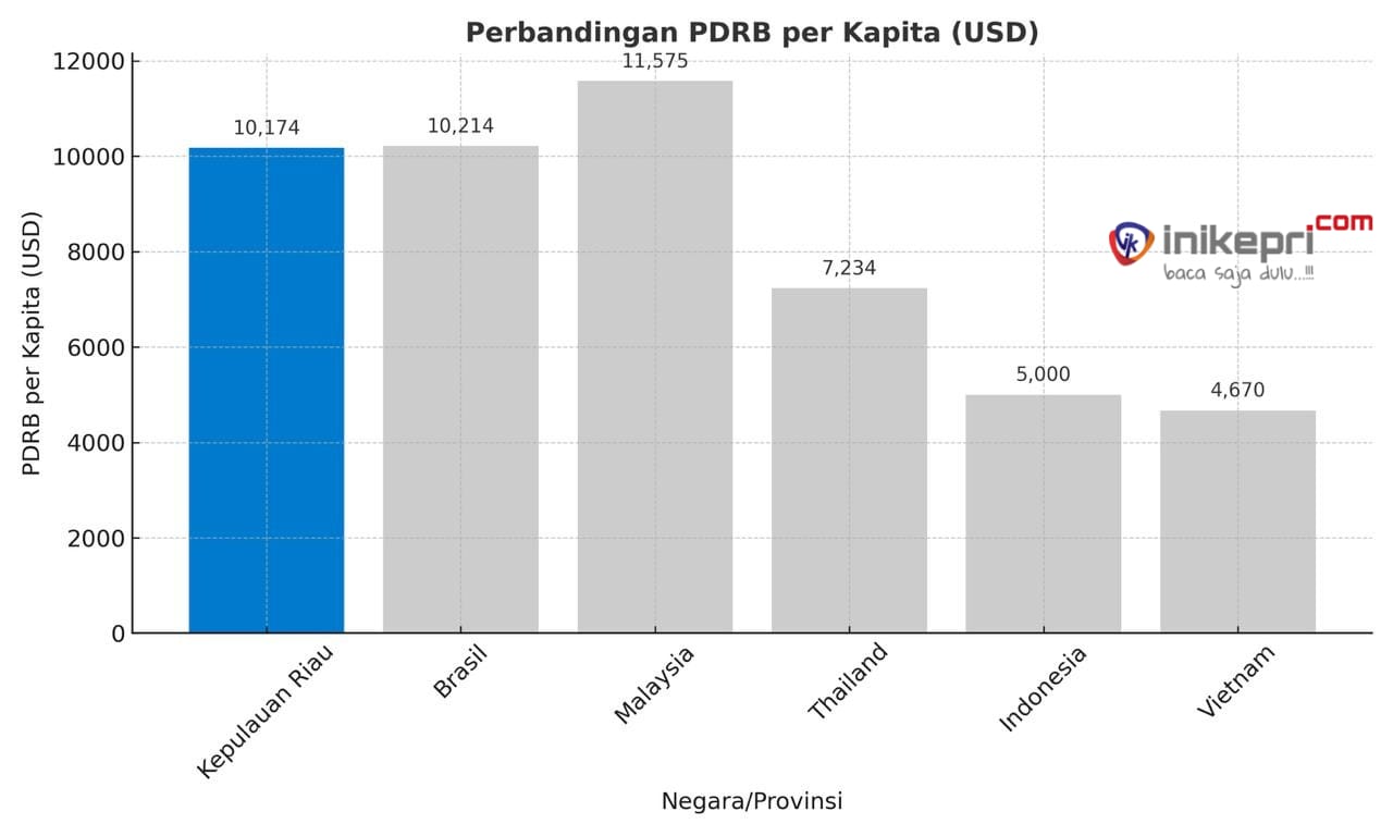 Untuk memberi perspektif global, Amalia membandingkan angka tersebut dengan negara-negara lain. PDRB per kapita Kepri saat ini: