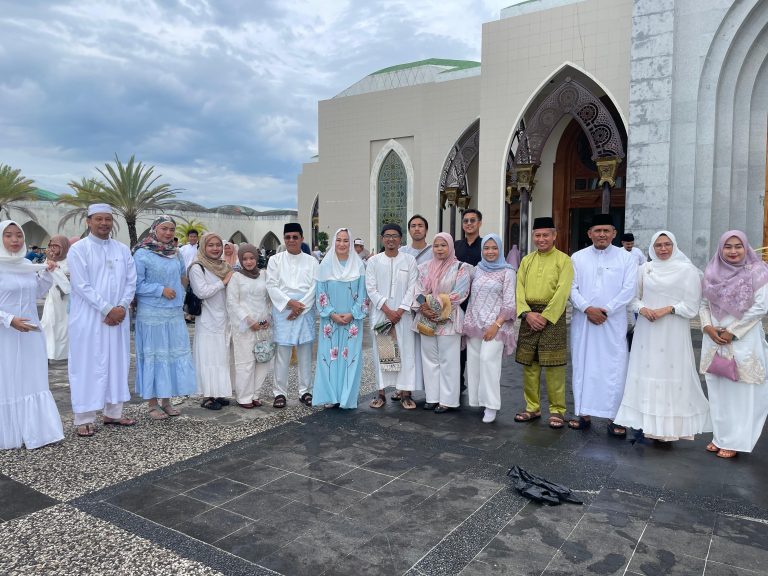 Bupati Natuna Cen Sui Lan bersama suami Raja Mustakim dan keluarga seusai menunaikan salat id Iduladha. Foto: INIKEPRI.COM