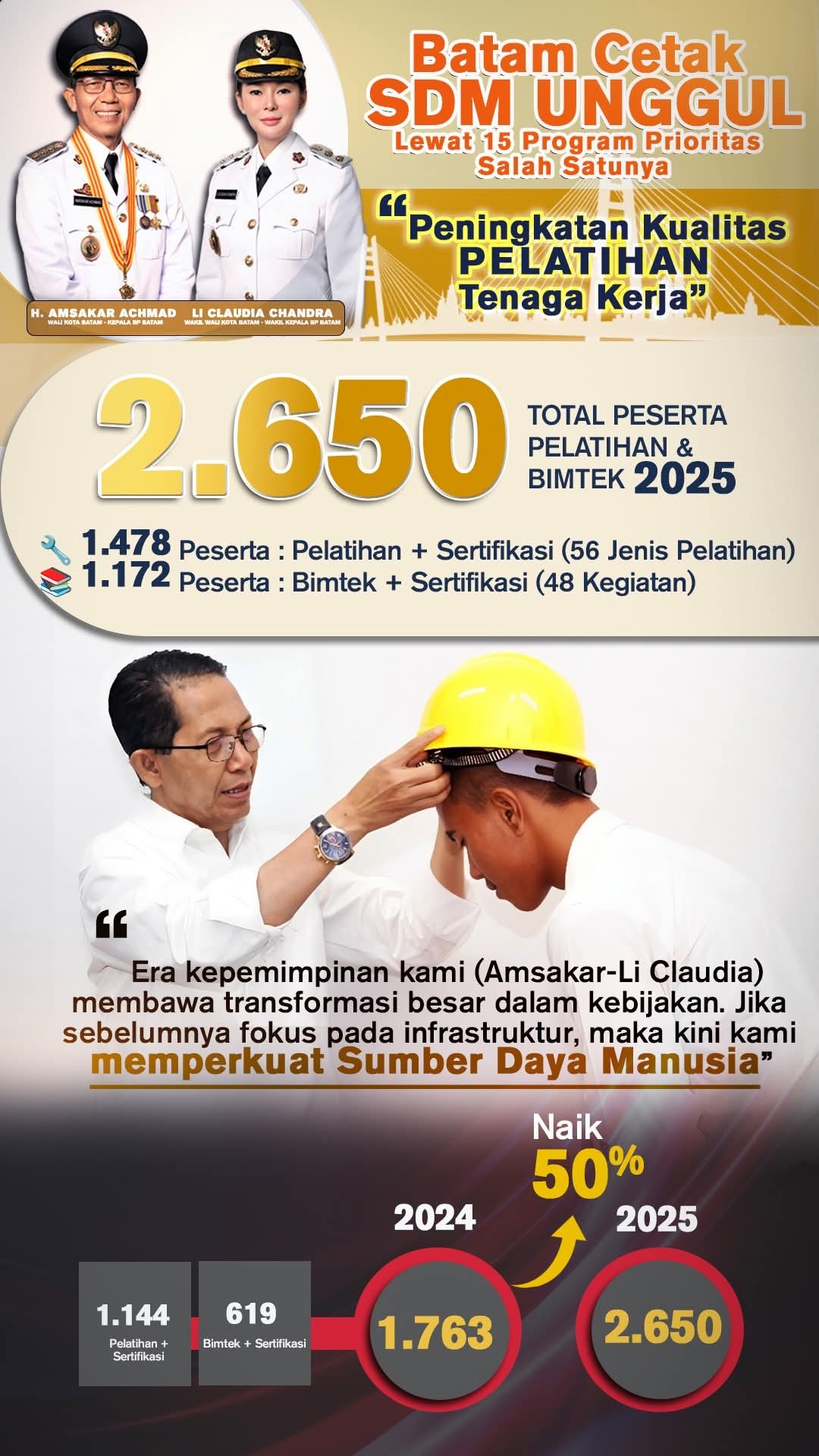 Program ini merupakan bagian dari 15 program prioritas Amsakar–Li Claudia dalam rangka memperkuat kualitas tenaga kerja lokal serta meningkatkan daya saing industri dan ekonomi kreatif di Batam.