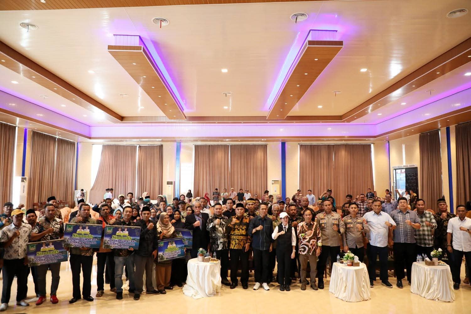 Wali Kota Batam Amsakar Achmad bersama Wakil Wali Kota Li Claudia Chandra menyapa langsung warga hinterland melalui agenda silaturahmi dengan Ketua RT, RW, dan LPM se-Kecamatan Galang dan Bulang. Kegiatan ini digelar di Aula Kepri Seafood Restaurant, Jembatan 3 Setokok, Sabtu (12/7/2025). Foto: INIKEPRI.COM