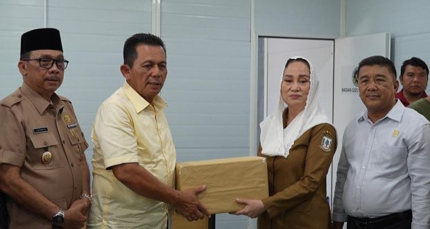 Gubernur Kepulauan Riau, H. Ansar Ahmad, menyerahkan peralatan uji cepat (Rapid Test Kit) kepada Bupati Natuna, Cen Sui Lan, dalam kegiatan di Dapur MBG Batu Hitam, Ranai, Senin (11/8/2025).