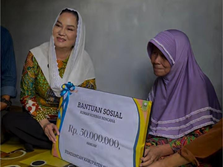 - Sriyani, warga Penagi, menerima Rp 2,5 juta atas kerusakan rumah yang dialami.