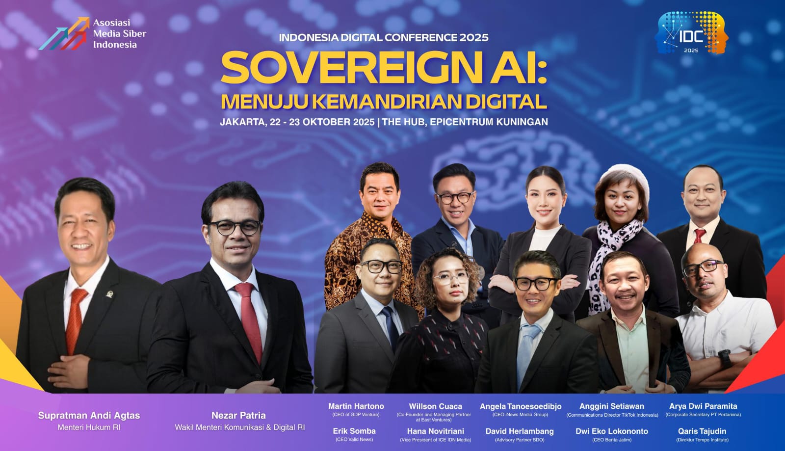 Selain kedua pembicara utama, IDC 2025 menghadirkan beragam narasumber lintas sektor, antara lain :
