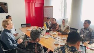 Bupati Natuna Cen Sui Lan bersama Tim Factory Acceptance Test (FAT) saat berdiskusi dengan tenaga ahli Leonardo Germany di Düsseldorf, Jerman, terkait kesiapan pemasangan radar canggih MS-2 BMKG untuk wilayah Natuna dan Tanjungpinang, awal 2026 mendatang. Foto: Istimewa