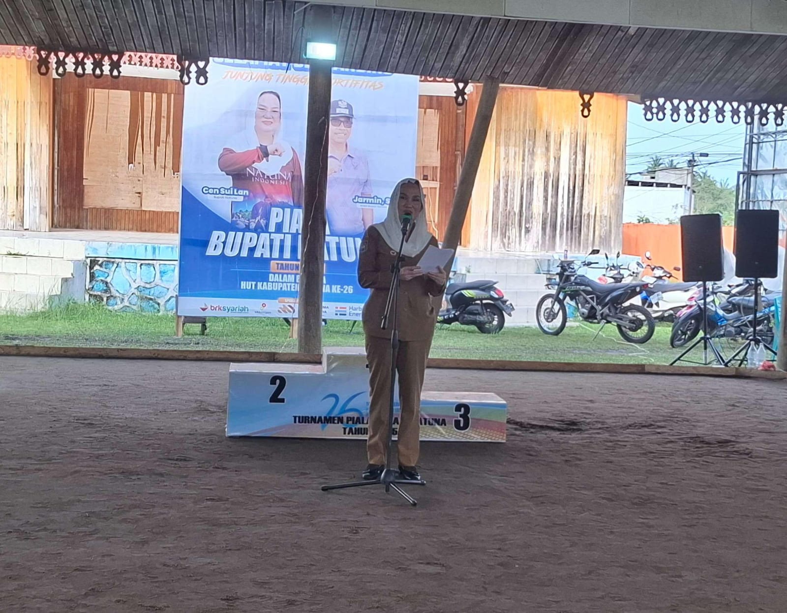 Bupati Natuna Cen Sui Lan saat menutup turnamen gasing di Ranai. Foto: Istimewa