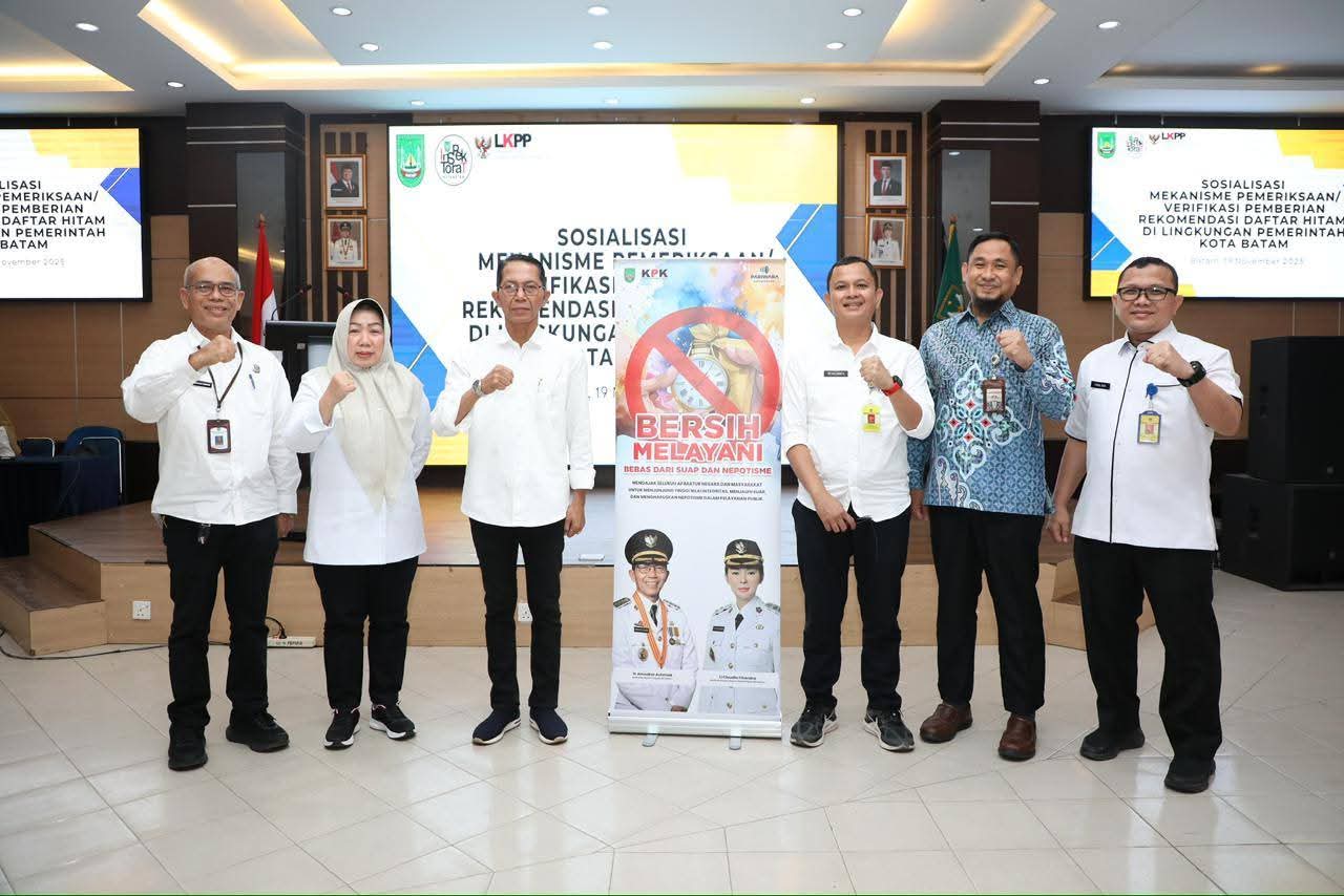 INIKEPRI.COM — Wali Kota Batam, Amsakar Achmad, membuka Sosialisasi Mekanisme Pemeriksaan dan Verifikasi Pemberian Rekomendasi Daftar Hitam bagi penyedia barang/jasa di Aula Engku Hamidah, Lantai IV Kantor Wali Kota Batam, Rabu (19/11/2025). Kegiatan ini diikuti 120 peserta yang terdiri dari PPK di tiap OPD dan 28 auditor.
