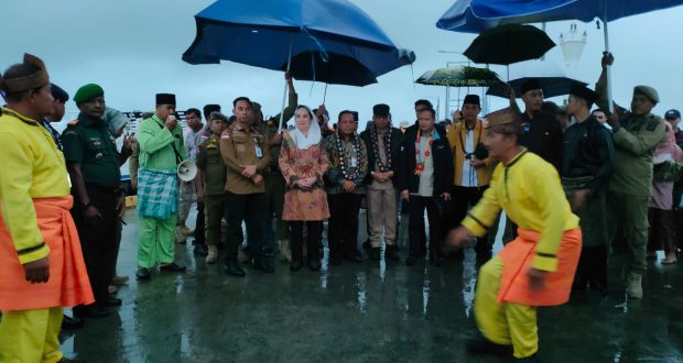 Bupati Natuna Cen Sui Lan dan Wakil Bupati Jarmin disambut dengan tradisi Melayu saat tiba di Pelabuhan PLBN Serasan. Foto: INIKEPRI.COM/NatunaKab