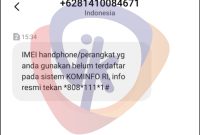 Batam, inikepri.com – Beredar SMS yang dikirimkan orang tidak dikenal, isi SMSnya menerangkan bahwa IMEI handphone yang tidak terdaftar. Berikut narasinya : IMEI handphone/perangkat…